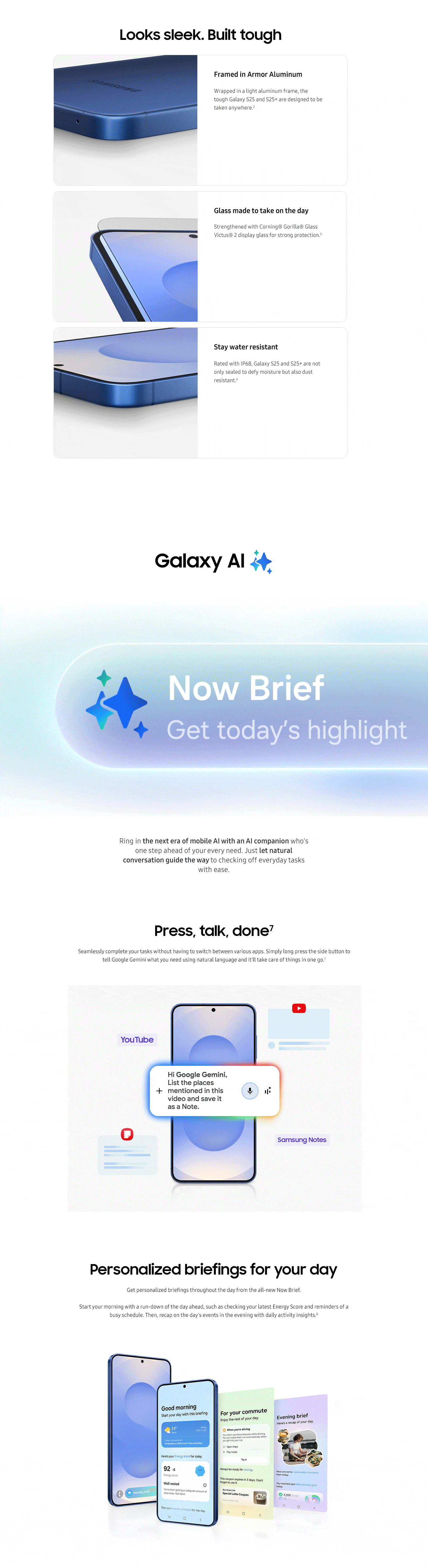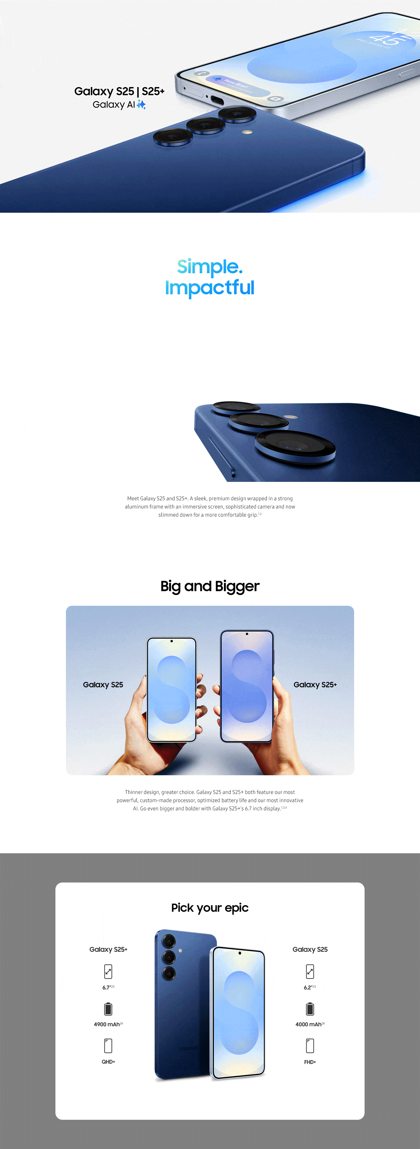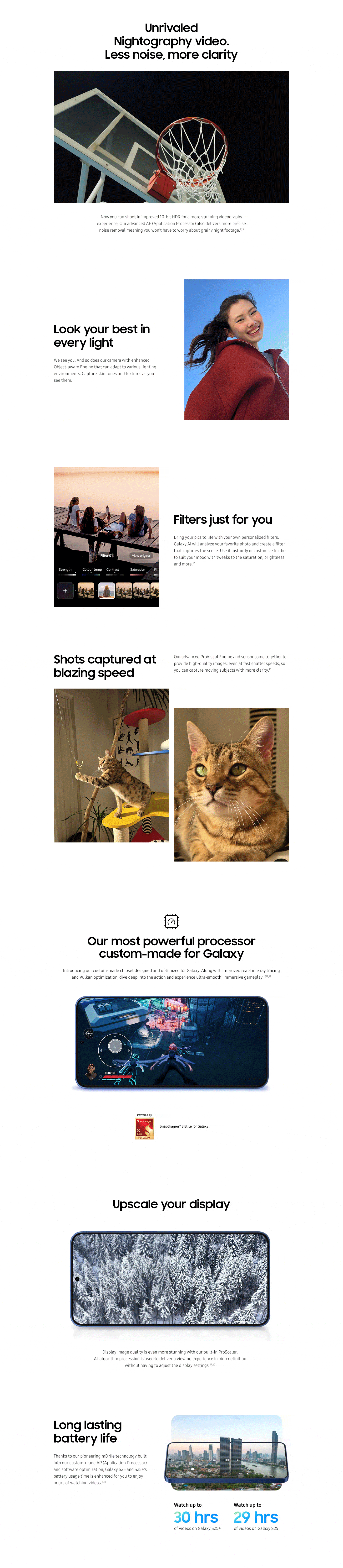 Meet Galaxy S25 and S25+, the smartphones with a Next-gen ProVisual Engine camera, custom-made processor, long-lasting battery and enhanced Galaxy AI.
