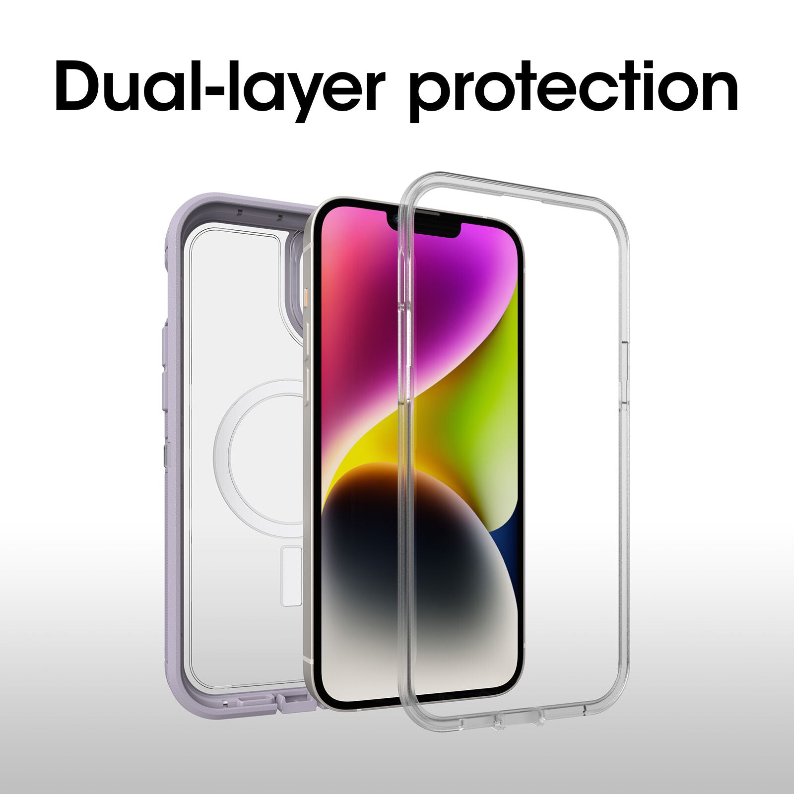 iPhone 14+: Otterbox Defender XT Magsafe Clear Series Case: Clear/Purple